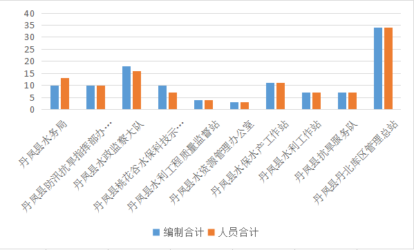 依據部門三定方案,2019年水務局部門由10個單位構成:政府職能行政單位一個,丹鳳縣水務局(本級),下設三個內設機構,黨政辦公室,業務計劃股,監督管理股;全額撥款事業單位七個,丹鳳縣水利工作站,丹鳳縣水保水產工作站,丹鳳縣水政監察大隊,丹鳳縣防汛辦,丹鳳縣水資源辦,丹鳳縣桃花谷水保科技示范園管理辦公室,丹鳳縣水利工程質量監督站;差額撥款事業單位二個,丹鳳縣抗旱服務隊,丹鳳縣丹北庫區管理總站。