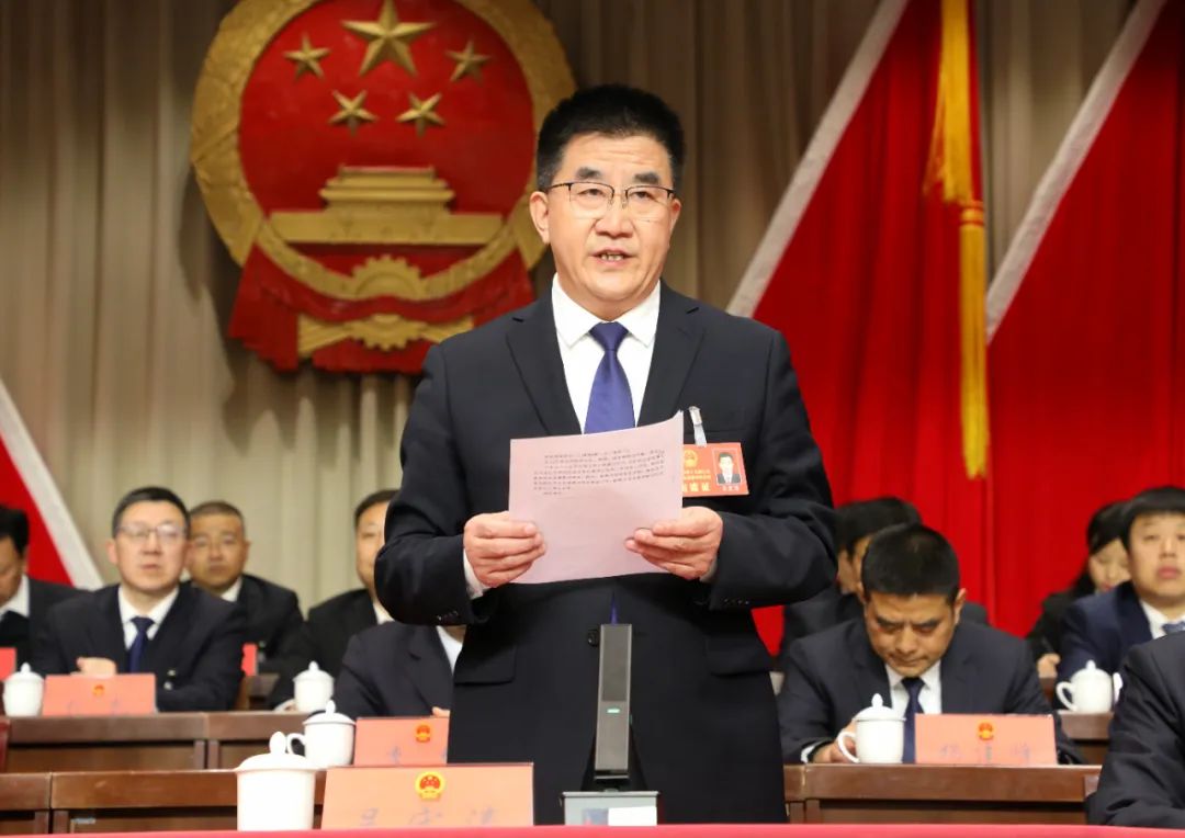 在熱烈的掌聲中,縣長吳春亮向大會作政府工作報告。報告共分三個部分:一、2024年工作回顧;二、2025年重點工作;三、全面加強政府自身建設。