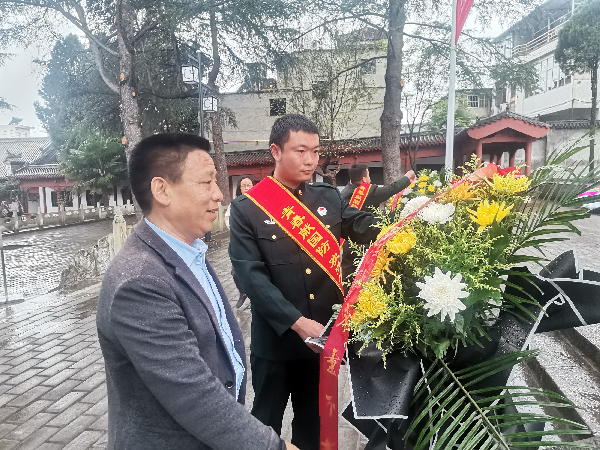 在蒙蒙細雨中,在繁茂松柏掩映下,縣烈士陵園莊嚴肅穆。局領導為退役士兵佩戴“青春獻國防 歡迎返家鄉”綬帶,感謝他們為國防建設做出的貢獻,熱烈歡迎戰友們返鄉。局領導和退役士兵代表向烈士紀念碑敬獻了花籃,全體人員面集體默哀并深深三鞠躬,深切緬懷革命先烈的豐功偉績,學習先烈堅定的信仰和誓死保家衛國的精神,引導大家繼承先烈遺志,傳承紅色基因,始終走在前列。