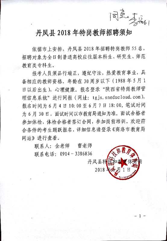 依據市上安排,丹鳳縣2018年招聘特崗教師55名,招聘對象為全日制普通高校應往屆本科生、研究生、師范教育類專科生。