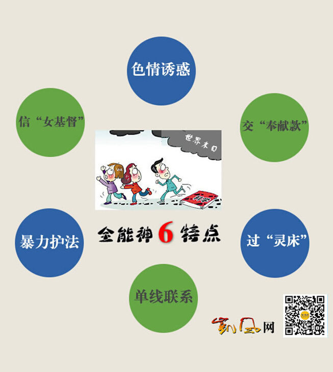 色情誘惑:很多年輕的全能神女信徒心甘情愿地用自己的身體勾引人入教,因為全能神認為信從“女基督”的人,不再有男女之別,可以同床共枕,可以“互通靈體”;教主趙維山還赤裸裸地提出:“為了得人付出什么代價都值得,這是傳福音的原則”。