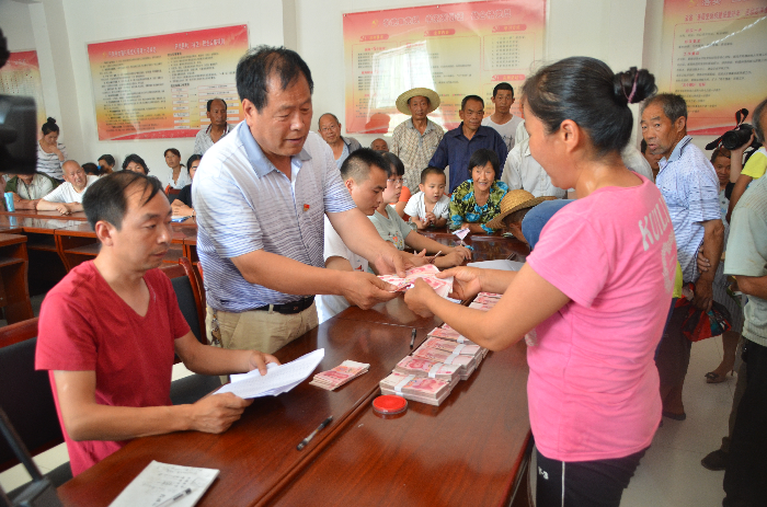 趙溝村隸屬丹鳳縣龍駒寨街道辦,位于縣城西兩公里處,轄21個村民小組792戶2932人,其中貧困戶236戶717人。該村是市供銷合作社脫貧攻堅包扶村,也是華茂公司2016年包抓的10個產業帶動精準脫貧示范村之一。為了讓該村貧困戶早日實現產業脫貧目標,華茂公司在趙溝村實施產業帶動精準脫貧項目,主要采取產業鏈招聘就業、幫助貧困戶家庭式散養雞增收、組織貧困戶加入散養雞專業合作社入股分紅和保障基地彌補等產業脫貧方式,實行“公司+合作社+貧困戶”管理,由公司統一設計雞舍、統一供應雞苗、統一供應飼料、統一技術管理、統一保價回收銷售的“五統一”生產模式發展產業,規劃建立散養雞合作社3個,養殖規模年出欄80萬只,帶動貧困戶社員691人,為211戶貧困戶免費投放雞苗1萬只,按市場價格自行銷售或公司代銷,在產業鏈安置貧困勞動力就業100余人。近日,華茂公司為趙溝村211戶貧困戶691人分紅。